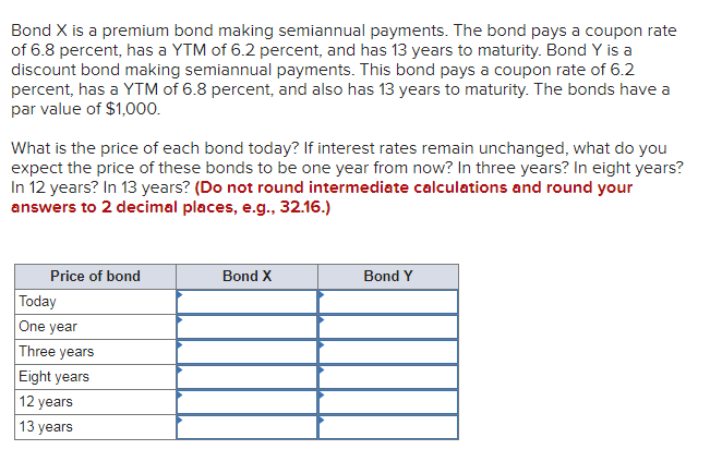 Solved Describe the impact of the coupon rate and yield to - Chegg Finance questions and answers. Describe the impact of the coupon rate and yield to maturity (YTM) on the bond par value and market value. If the Federal Reserve Bank decides to increase the interest rate by 1% beginning next quarter, what steps would you take as the CFO of a company to raise capital from the financial markets? Bond Pricing Formula | How to Calculate Bond Price? | Examples The prevailing market rate of interest is 7%. Hence, the price of the bond calculation using the above formula as, Bond price = $104,158.30 Since the coupon rate is higher than the YTM, the bond price is higher than the face value, and as such, the bond is said to be traded at a premium Example #3 Let us take the example of a zero-coupon bond.